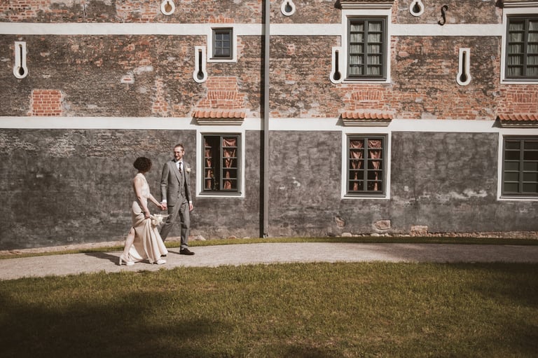 Viską spėjome kuo puikiausiai ir be jokio skubėjimo. Toli niekur eiti nereikėjo, fotografavomės prie pilies, pasidarėme visus kadrus ir net sutaupėme 15 minučių jauniesiems atsipūsti. Po fotosesijos palikome jaunuosius švęsti, o po poros mėnesių atidavėme jiems 250 jų šventės kadrų.