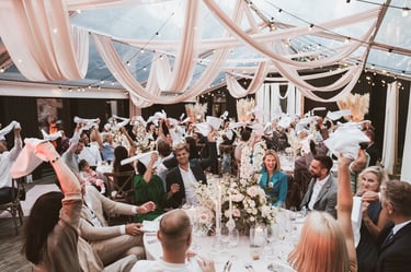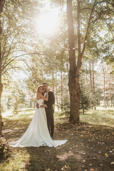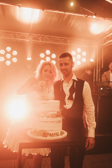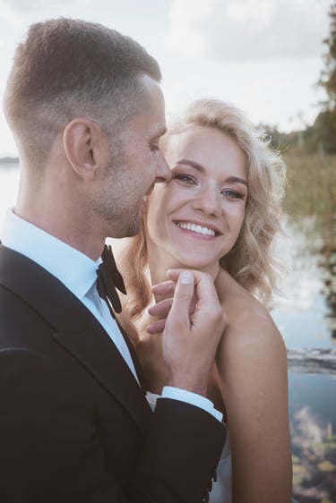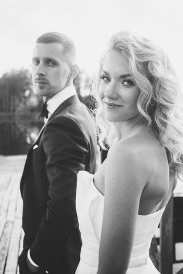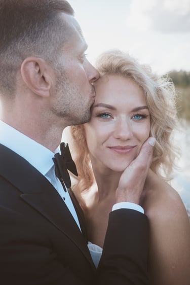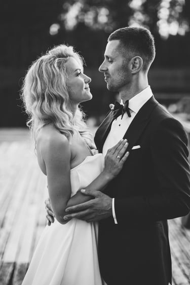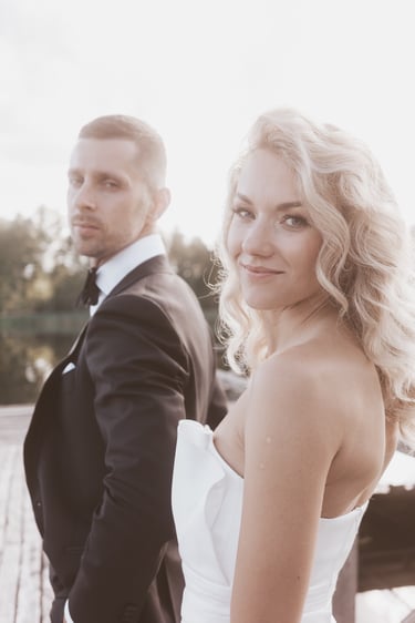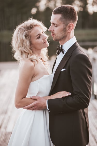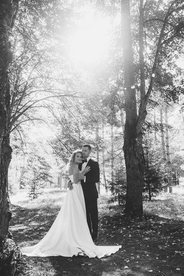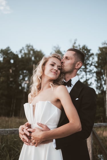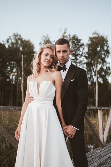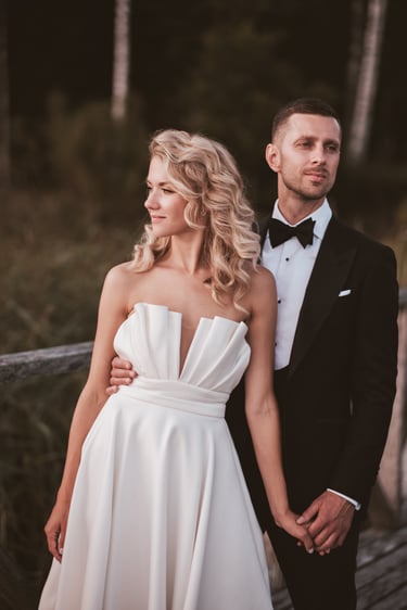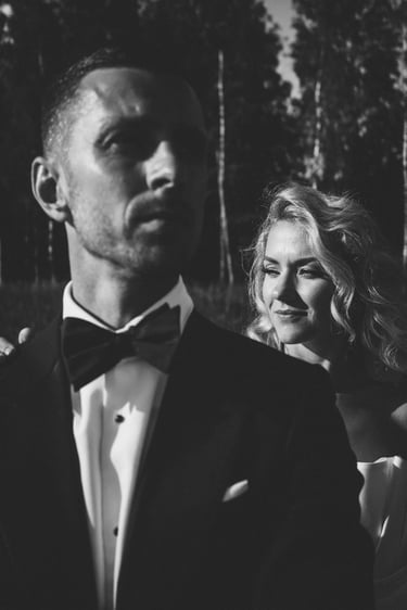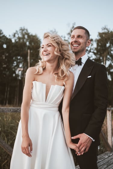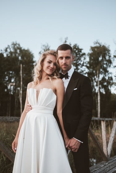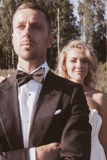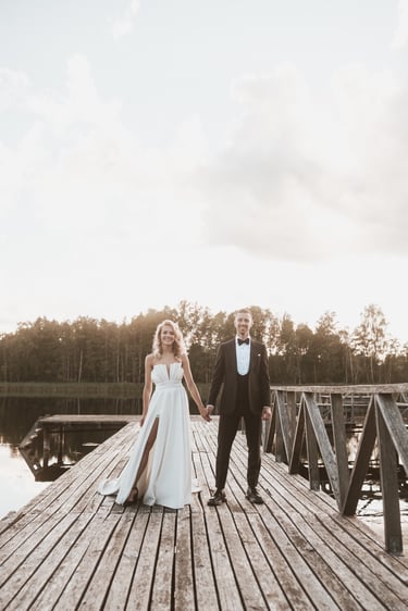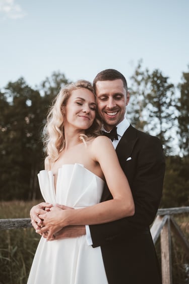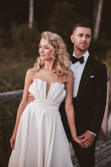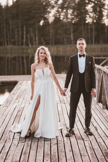 Atėjus vestuvių dienai, kuri vyko viduryje rugpjūčio, ryte susitikimo Vilniaus katedroje, nufilmavome labai gražią ir jautrią ceremoniją, o vakare nuvykome į Anykščių juostą, kur turėjo vykti vakarinę dalis. Tik nuvykus mus pasitiko vestuvių organizatorė ir paprašė, kad padarytume trumpą fotosesiją jauniesiems prieš prasidedant sveikinimams, nes jų fotosesija Vilniuje buvo nutraukta labai stipraus lietaus ir jie nespėjo pasifotografuoti tiek kiek norėjo. Mes žinoma sutikome ir nors fotosesijai turėjome 10 minučių, čia galite pamatyti ką galima nuveikti per tokį trumpą laiką :)