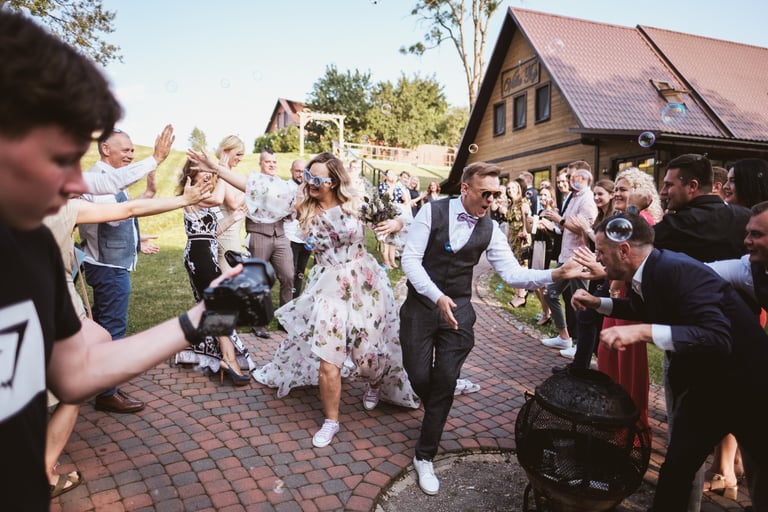 Vėliau sekė šventė su daug žaidimų, šokių ir puikia kompanija, viską vainikavo fontanų šou. O aš sėdau į išsinuomotą automobilį ir grįžau namo su visiškai užpildytom atminties kortelėm ir nudegusia nosimi. Po poros mėnesių jaunieji gavo beveik 900 sutvarkytų nuotraukų, kurių dalį galima pamatyti čia.